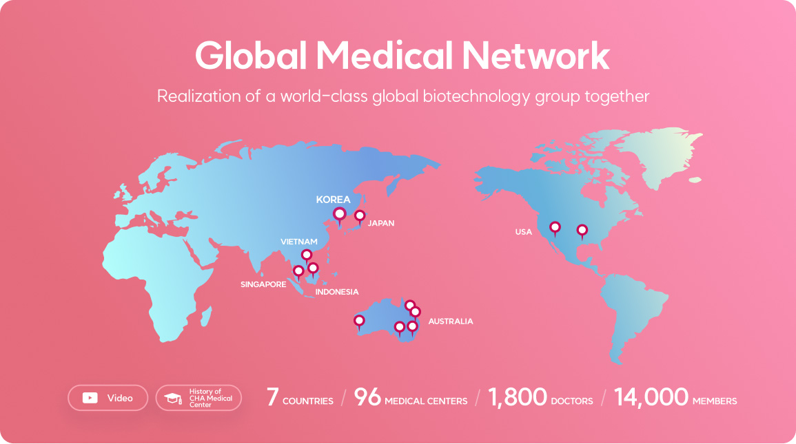 グループの海外医療事業はCha Healthcareが管理しており、米国、オーストラリア、シンガポール、日本、インドネシア、ベトナムを含む6か国の主要都市で約80の医療サービスプラットフォームを運営し、アジア太平洋地域で最大の医療ネットワークを有しています。